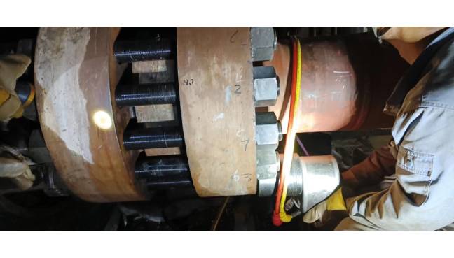 其實(shí)大型水輪機(jī)的很多位置也都是使用使用高強(qiáng)螺栓連接,像基礎(chǔ)環(huán)、座環(huán)、蝸売、尾水管排水盤形閥及其附件、蝸殼排水盤形閥及其附件機(jī)坑里襯底環(huán)、頂蓋、轉(zhuǎn)輪導(dǎo)葉及操作機(jī)構(gòu)、接力器、主軸及密封、輪機(jī)導(dǎo)軸承大軸自然補(bǔ)氣裝置等。這些螺栓的安裝預(yù)緊之后需要經(jīng)受住惡劣的運(yùn)行環(huán)境,因此預(yù)緊力要求也是比較高。水輪機(jī)安裝預(yù)緊或者檢修做采用的螺栓預(yù)緊工具一般是以液壓螺栓拉伸器為主。液壓螺栓拉伸器軸向拉伸,螺栓上所加載的預(yù)緊力損耗較少,有效加載更多。但在一些特殊的位置,螺栓周圍空間特別小,只能使用薄型的中空液壓扳手來進(jìn)行預(yù)緊拆卸。因此,水輪機(jī)的安裝檢維修既需要螺栓拉伸器也需要液壓扳手。