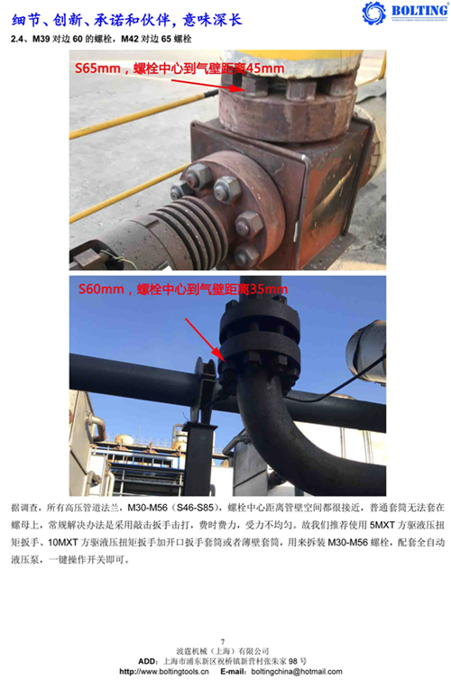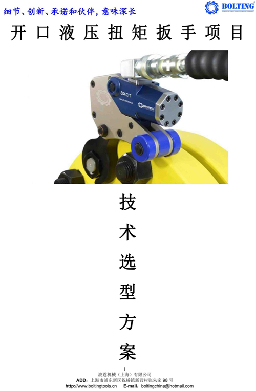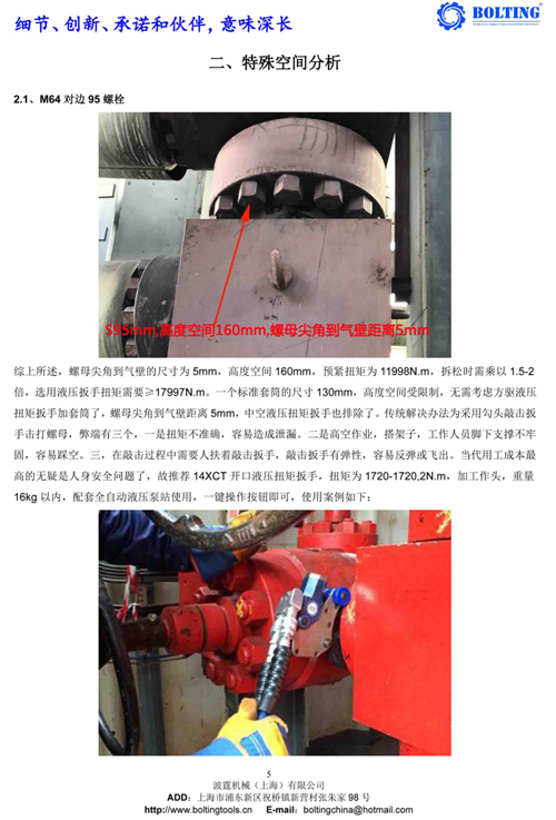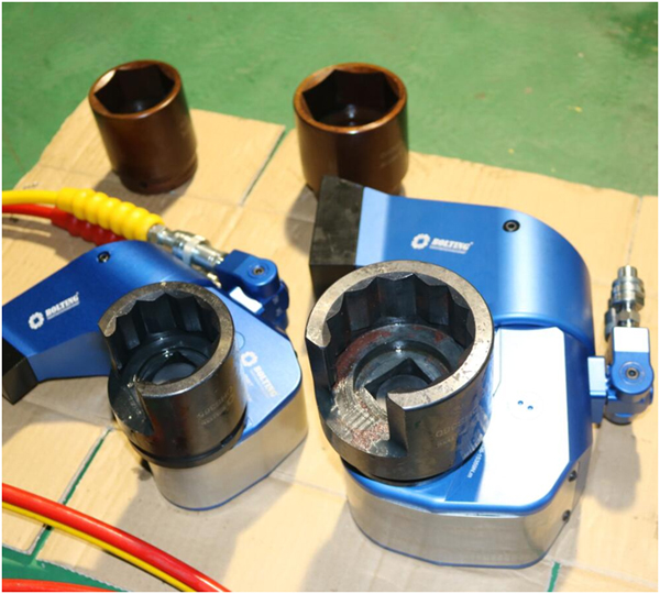 業(yè)主方之前從武漢購(gòu)買過(guò)一套德國(guó)品牌液壓扳手,使用情況并不理想,由于液壓泵和開(kāi)口液壓扳手較為笨重,故不考慮。